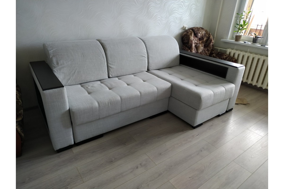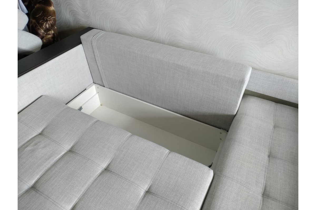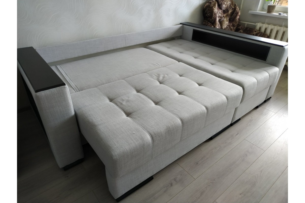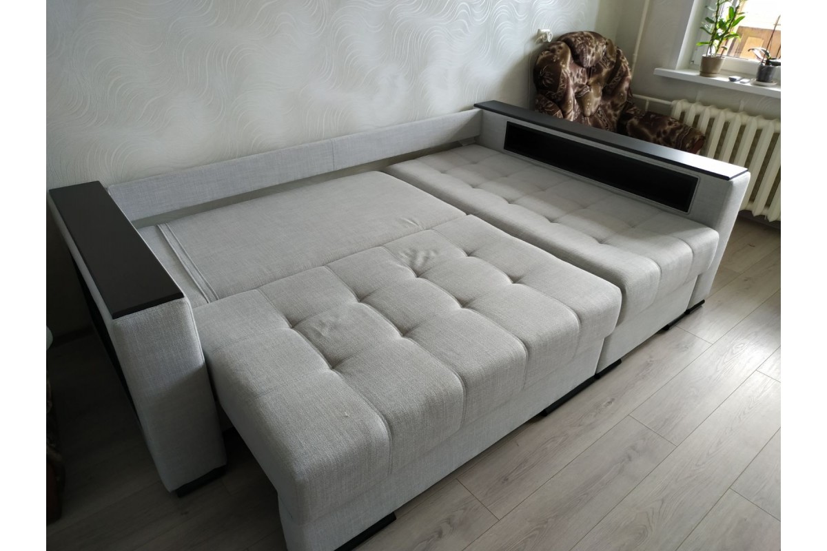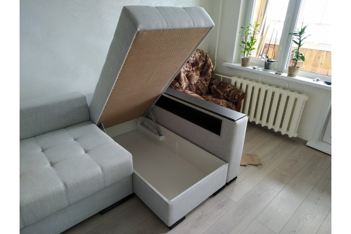 Угловой диван средних размеров по своему функционалу может заменить большую двуспальную кровать. Причём, мы гарантируем вам комфорт во время сна благодаря ортопедическому наполнителю. Он равномерно снимает нагрузку со всей спины. В угловом отсеке есть место для хранения постельного белья.