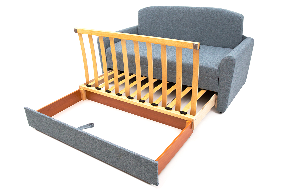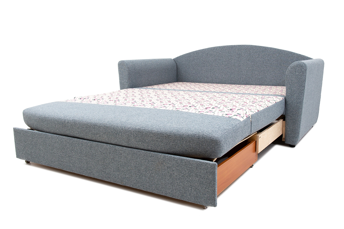 Способ раскладывания: потянуть за потайной ремешок и выдвинуть до полного разложения, откинуть подушки или матрац назад.