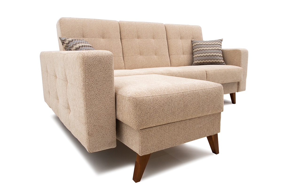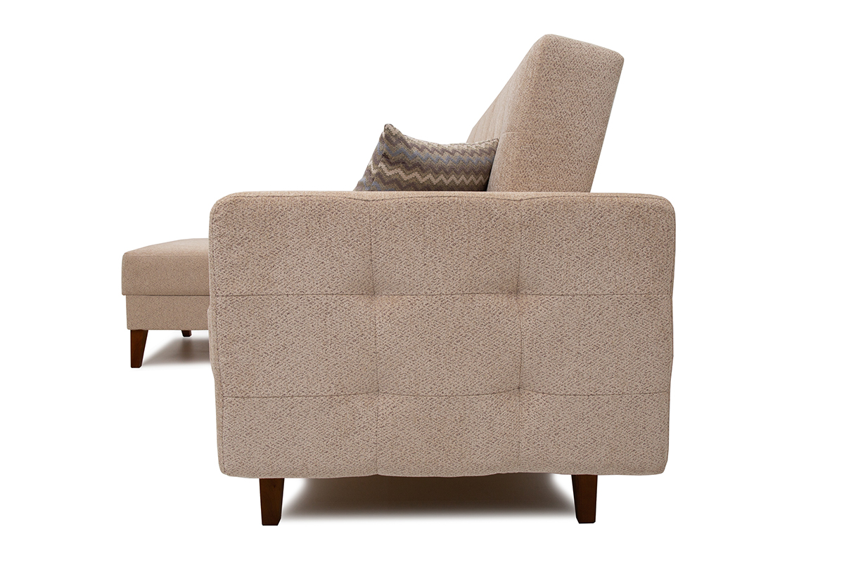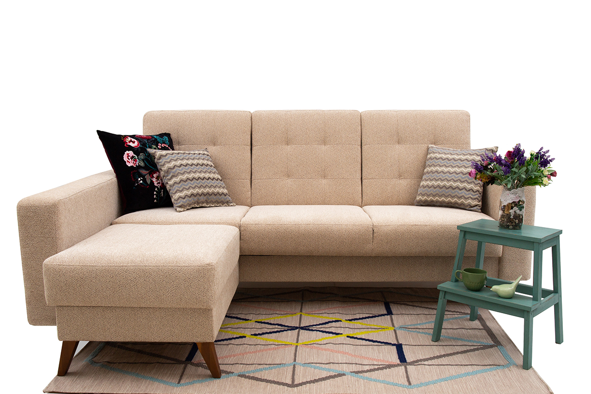 Диван-кровать угловой Доменика — современная, практичная модель предназначенная для ежедневного отдыха. Идеальное решение для небольшой гостиной городской квартиры. Диван на опорах из натурального массива, он будет удачно гармонировать с изделиями из натуральных пород дерева. В комплект входят две декоративные подушки. Имеется ящик для хранения. Возможна комплектация левого и правого угла. Механизм трансформации «книга» обеспечивает надёжность эксплуатации дивана.