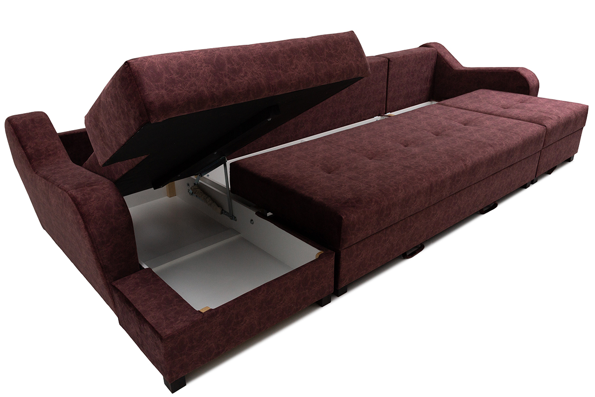 Сидение и спинка дивана на основе независимого пружинного блока. Основание сидения и спинки – пиломатериалы хвойных пород. Имеется 2 емкости для постельных принадлежностей.