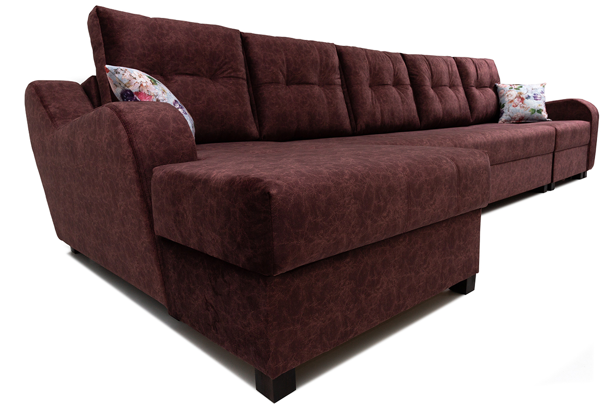 Диван-кровать угловой Ярослава-2 состоит из длинной секции 1Д, короткой секции 1К, угловой секции с подъемным механизмом 1П с ящиком для хранения, 5-ю большими и двумя маленькими декоративными подушками. Угол может быть как в правом, так и в левом исполнении.