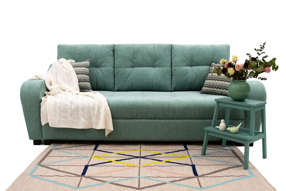 Способ раскладывания: потянуть переднюю часть дивана на себя, выдвинуть сиденье и поставить механизм на пол. Опустить спинку.