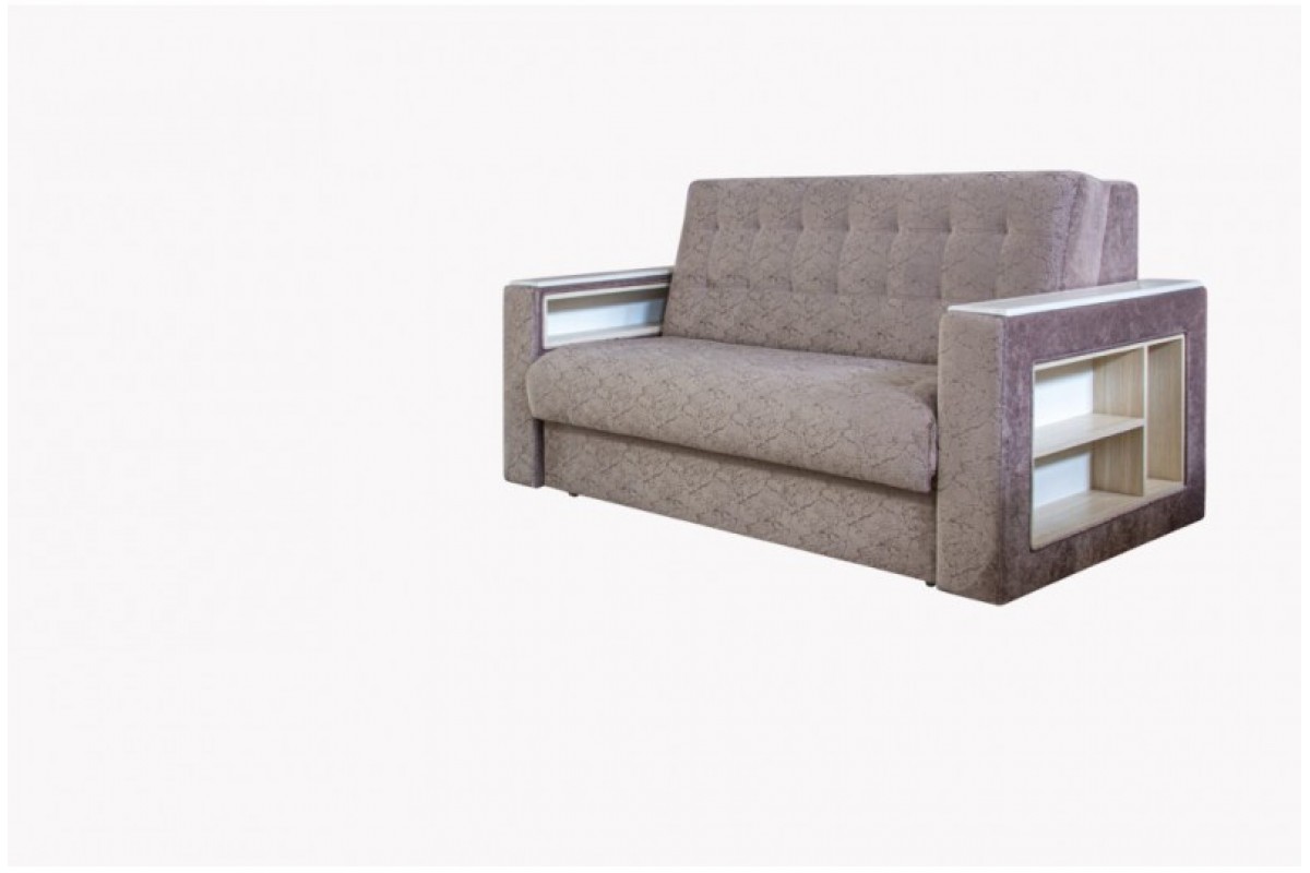 Трёхместный диван с боковыми встроенными деревянными полками. Отличное решение для гостиной, спальни и детской комнаты. Преимущество в наполнении — вам будет удобно просто лежать и спать на нём. Основание дивана равномерно снимает нагрузку с мышц спины. Благодаря своему цветовому решению диван впишется в любой дизайн интерьера.