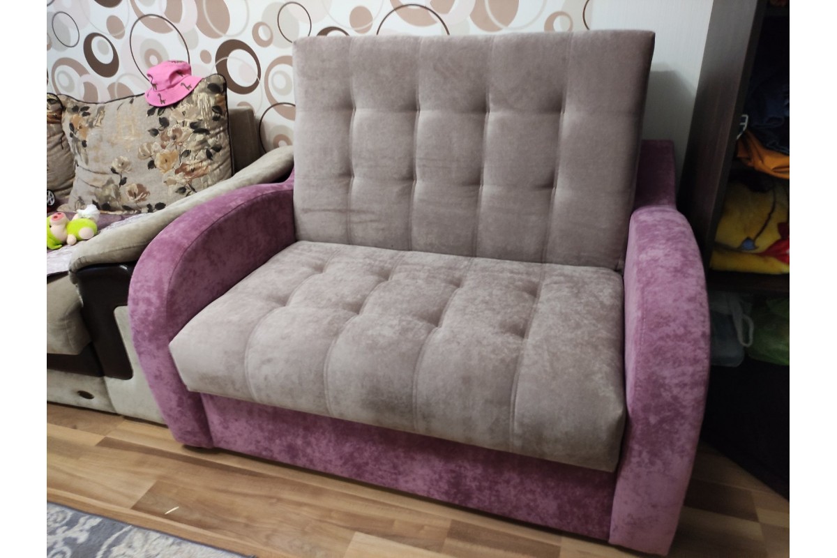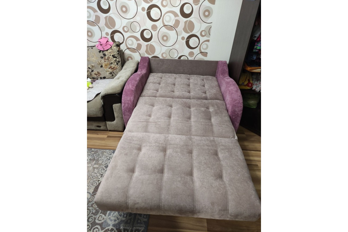 Двухместный диван по габаритам отлично впишется в спальню, офис и детскую комнату. Есть вместительное место для хранения постельного белья. Преимущество в наполнении ППУ — диван мгновенно восстанавливает первоначальную форму, в нём не скапливается пыль, он гипоаллергенен и имеет хорошую воздухопроницаемость. Последнее важный момент, если в доме есть маленькие дети.